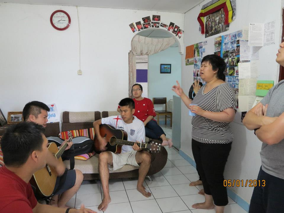 After breakfast, Gary and I began to jam together on the acoustic guitars. We had brought one of the guitars over from Singapore under the guise that it was my guitar, but the team had actually bought it as a gift for Agung which we would present to him at the end of the trip.