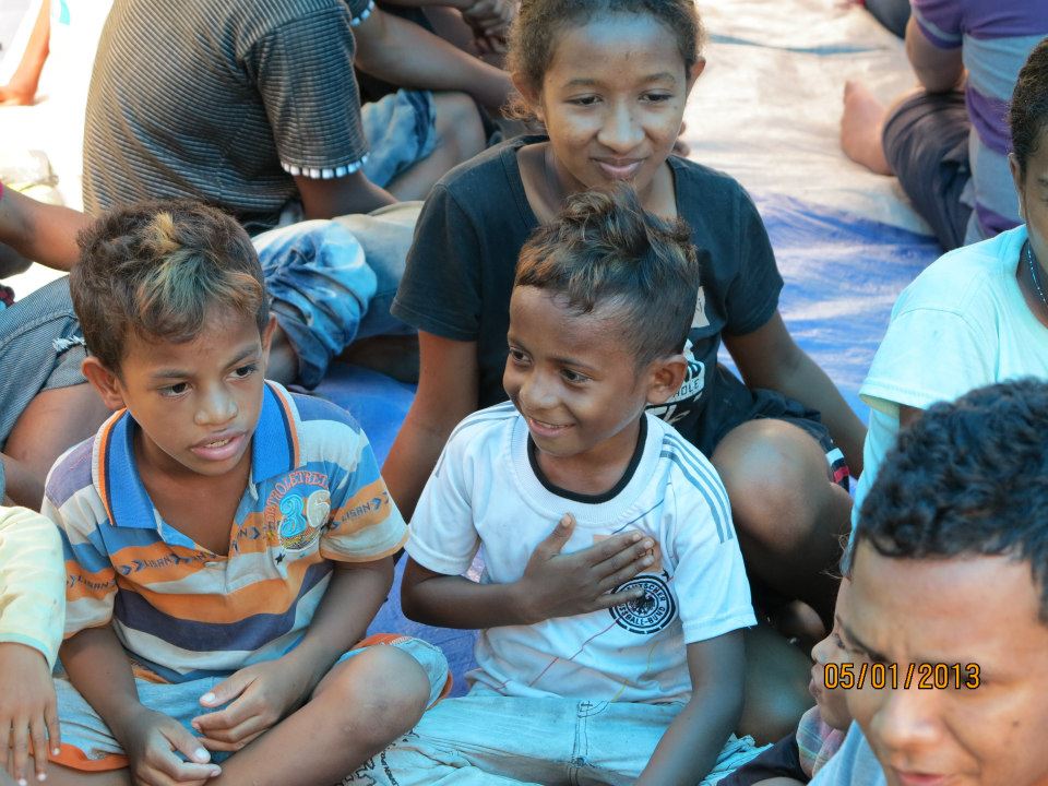 We were soon off to the village where two large pieces of tarp had been spread over the ground as a seating area. We were told that there is a phenomenon known as “Timor time” – if you set a program to begin at 10 am, people might only rock up at 10.30 or 11 am.