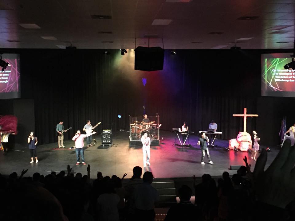Last Sunday was our last Sunday meeting in our usual auditorium for a few months whilst it undergoes renovation. Our worship director Dave decided that we should do a service focussing on exuberant praise. The idea was for the worship team to model what this meant for the rest of the church. Our lighting team introduced the haze machine and some intelligent lights called “Intimidators” (nice!). And we deliberately hit hard on the jumping, dancing and shouting. One of our singers said that they felt a bit uncomfortable at first, but after seeing me and Dave going for it, it would have actually been awkward to hold back!