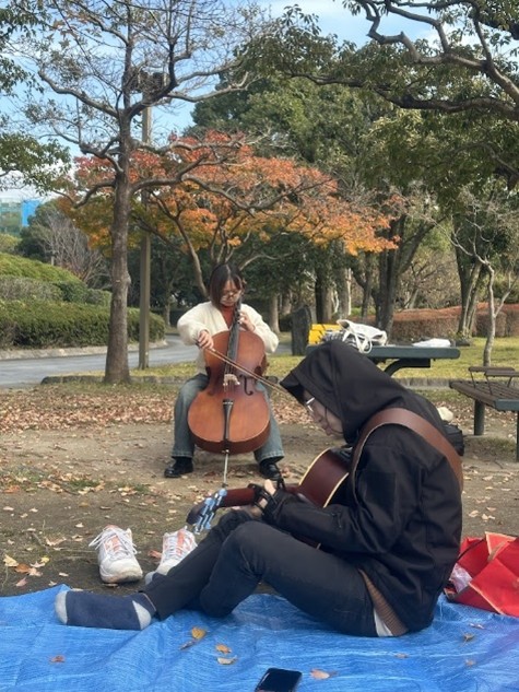 Meanwhile, earlier that day, the team in Fukuoka held a picnic in the park with some students before adjourning to nearby cafes for further chats.